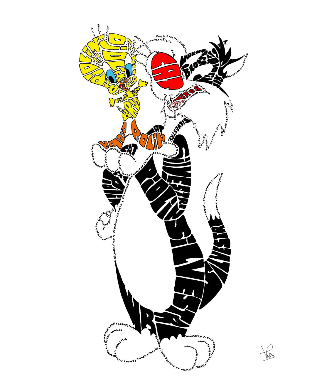 Revivo la magia de los personajes que marcaron nuestra infancia transformándolos en arte tipográfico. Cada ilustración está hecha a mano y formada íntegramente con palabras, frases y detalles que representan su esencia.